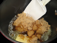 Combine first 3 ingredients in a small saucepan. Cook over medium heat 5 minutes or until mixture is bubbly, stirring constantly. Pour mixture evenly into a large baking dish coated with cooking spray.